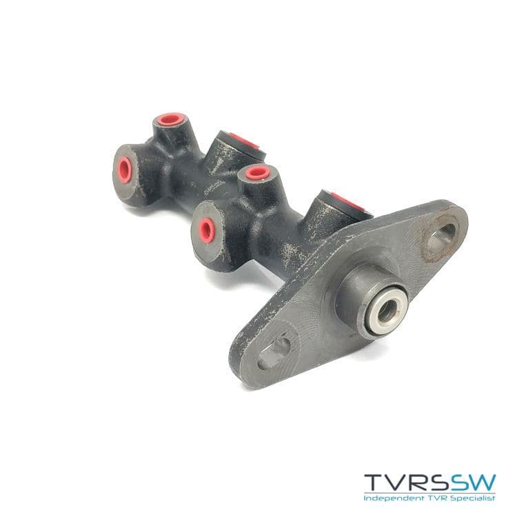 Brake master cylinder for TVR Griffith and Chimaera models. This brake master cylinder has 2 x M10 and 2 x M12 outlets.
